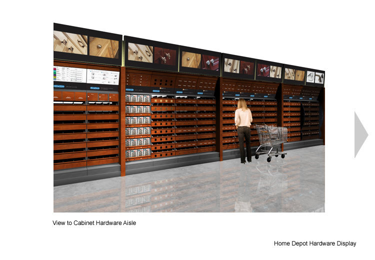 The Home Depot Cabinet Hardware Display was a project initiated by Amerock to redesign the layout of the cabinet hardware area at Home Depot. The strategy was to create a "store within a store" that was more residential and fashion-oriented than the existing, "dump bin" solution.
