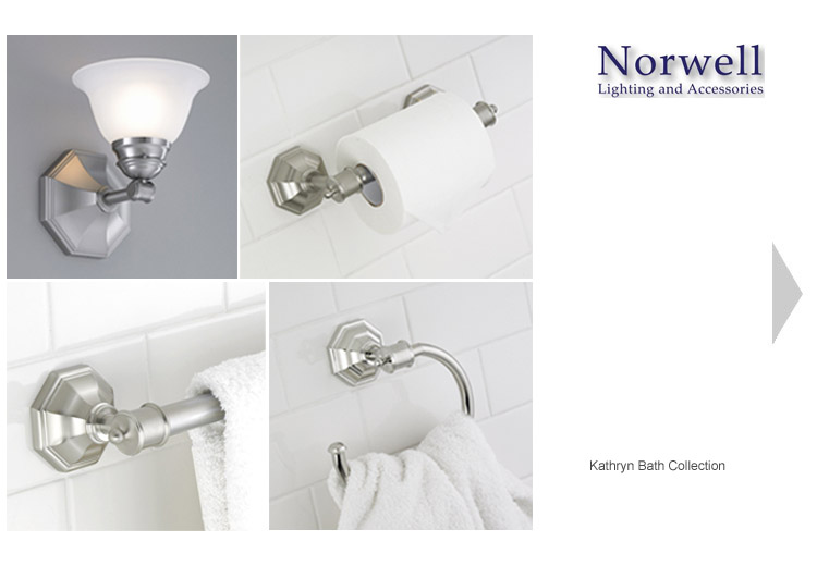 Mick's Designs for Norwell started with the Kathryn collection of bath hardware and lighting. This series was designed to evoke the glamous spirit of 1930's-40's Hollywood. The full collection features sconce lighting in 1 to 3 lights, and a full assortment of wall-mounted hardware.